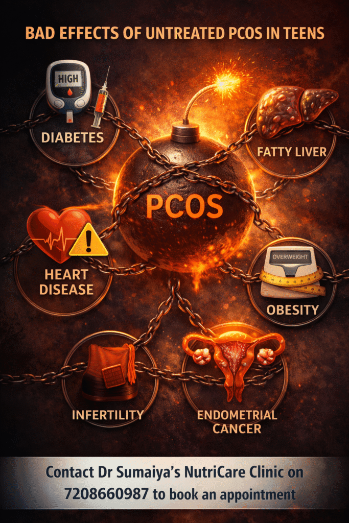 PCOS is not just a reproductive issue that she will “grow out of.” It is a complex, systemic endocrine and metabolic disorder. When left uncorrected in the teenage years, PCOS acts as a ticking time bomb, quietly laying the groundwork for severe, life-altering chronic diseases in her 20s, 30s, and beyond.